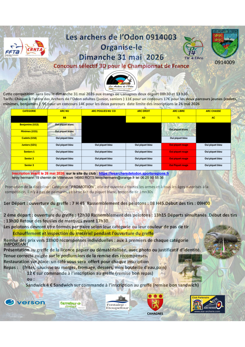 Inscription au concours Tir 3D - le 31 MAI 2026 - CAHAGNES